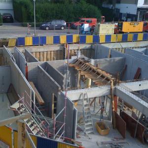Construction of a residential building consisting of 14 apartments, commercial surfaces on the groundfloor and 2 underground parking levels.