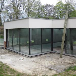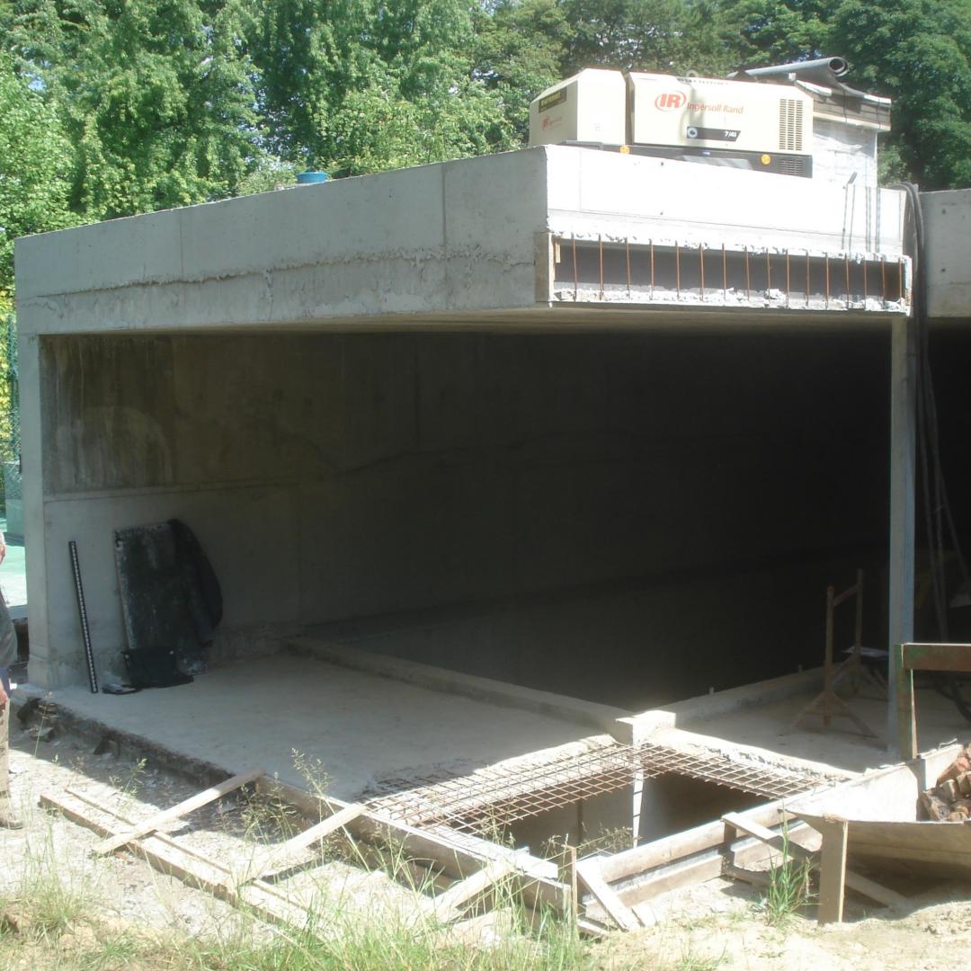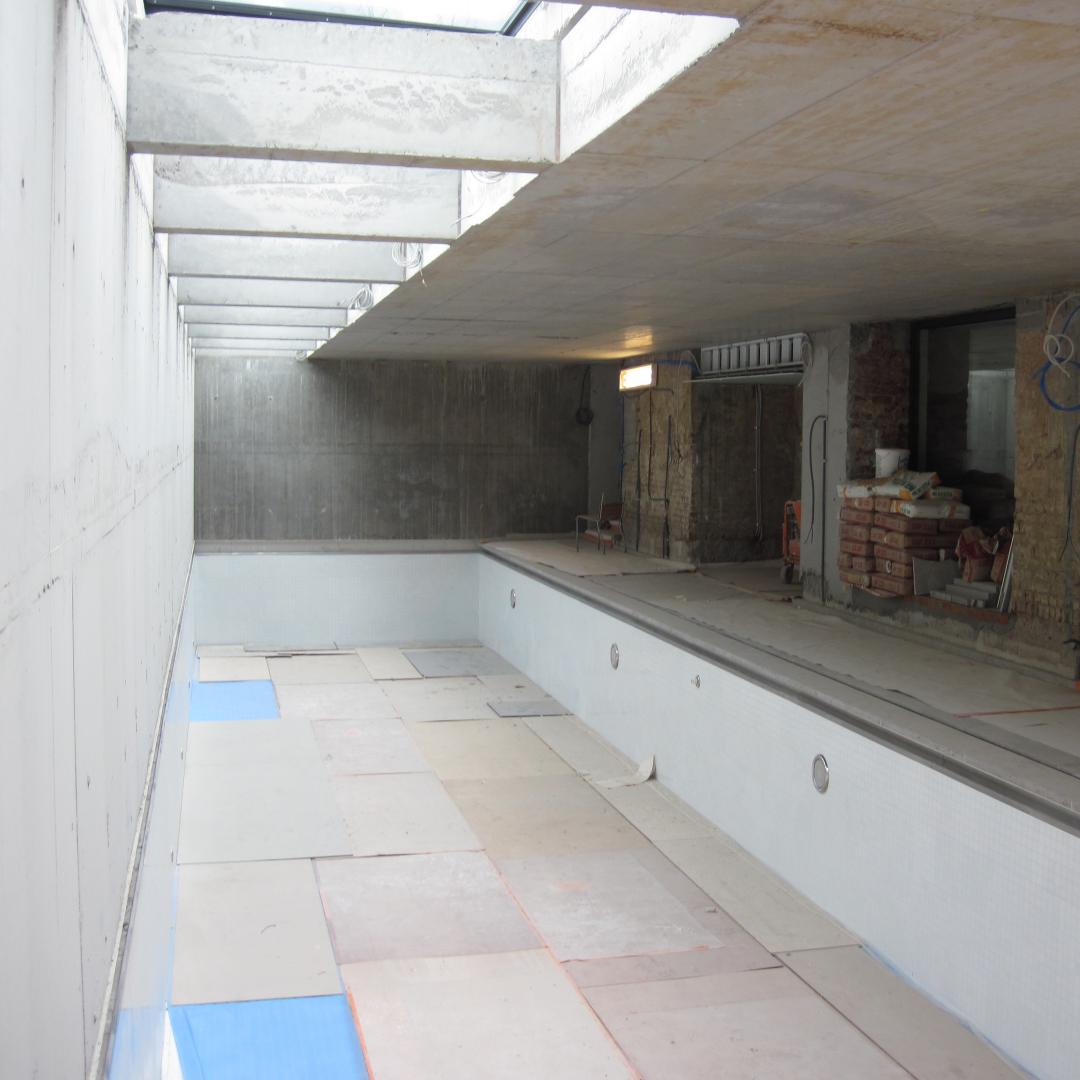 Transformation of a single family house: construction of a swimmingpool in the basement and extension on the groundfloor.