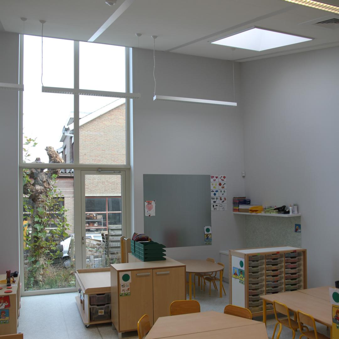 Extension of an existing school: construction of 4 new classrooms, a multipurpose room and administrative offices.